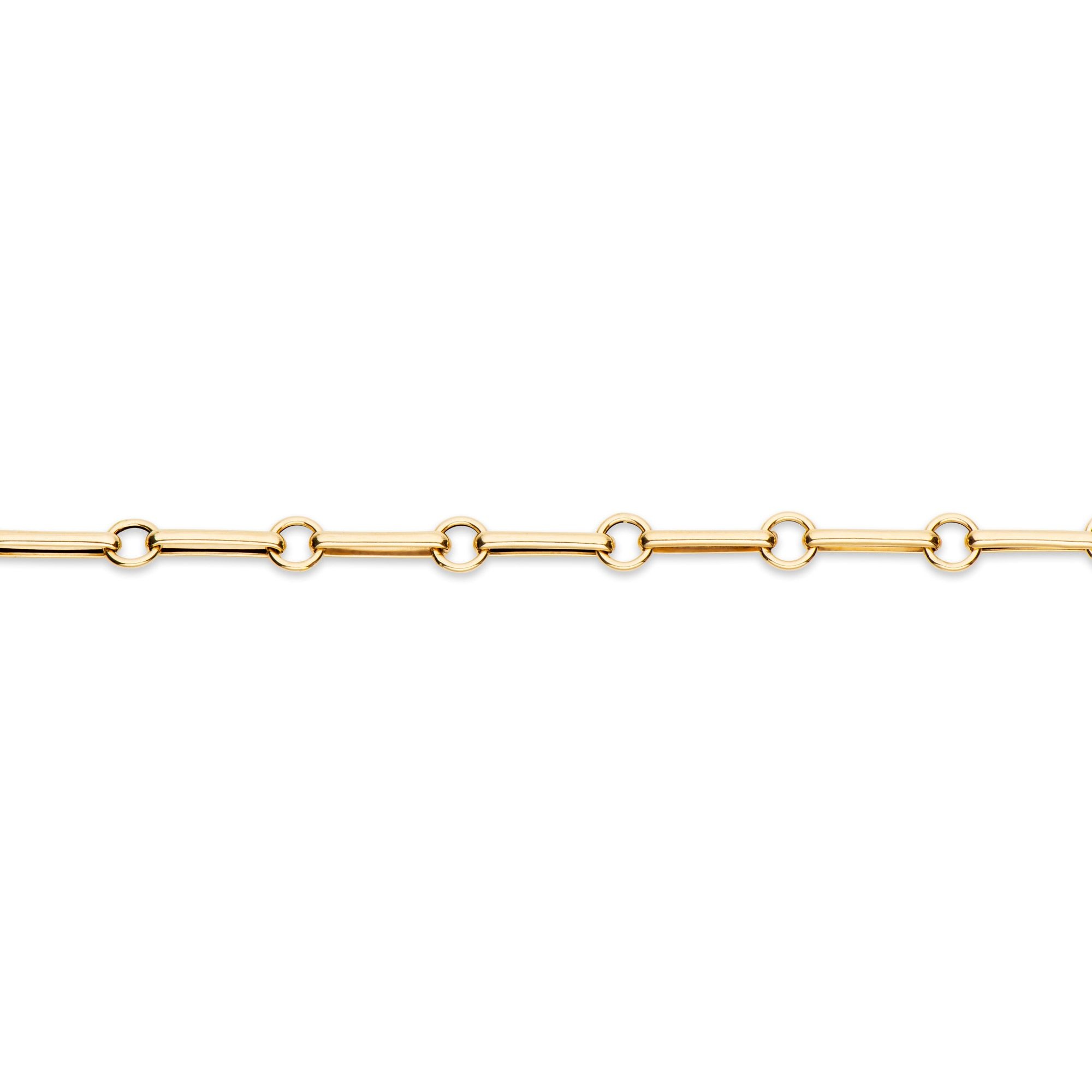 Bar link bracelet of contemporary styling. The bracelet is crafted in 14k yellow gold and measures 7 inches in length. It is comprised of high polish bar links joined together by high polish, circular links. The bars measure 2.0mm in width and 7 inches in length.